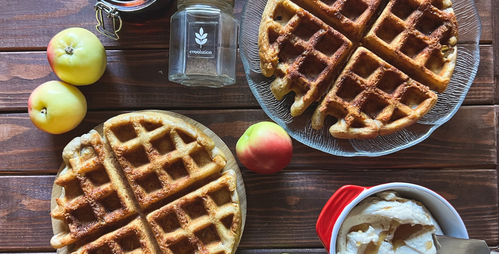 The long anticipated chill in the air bringing back the best season is here!!! Couldn’t be more excited. I am wasting no time getting into the fall recipes starting with these Crispy spiced Apple Waffles with salty Maple Butter. A great weekend breakfast. These waffles stay pretty crisp, so you can eat them the next day with that salty maple butter and they’ll be just as good